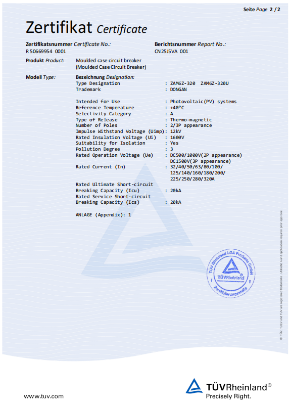 ব্রেকিং নিউজ: গ্রিনওয়্যাটের ফ্ল্যাগশিপ জাম 6 জেড 320 এ ডিসি 1000 ভি/1500 ভি কেস সার্কিট ব্রেকার টিউভি রাইনল্যান্ড শংসাপত্র অর্জন করেছে (সার্ট। নং: আর 506699540001), পুনর্নবীকরণযোগ্য শক্তি ব্যবস্থার জন্য শীর্ষ স্তরের ডিসি এমসিসিবি প্রস্তুতকারক হিসাবে এর অবস্থানকে শক্তিশালী করে!